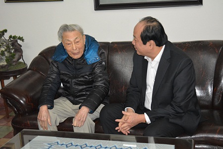 Bộ trưởng, Chủ nhiệm VPCP Mai Tiến Dũng thăm và chúc Tết nguyên Phó Chủ tịch Hội đồng Bộ trưởng Đồng Sỹ Nguyên. Ảnh: Hoàng Anh |