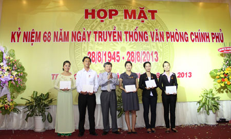 (Chinhphu.vn) - Ngày 25/8, tại TP Hồ Chí Minh, Cục Hành chính - Quản trị II, Hội trường Thống Nhất và Cơ quan Thường trú Báo Điện tử Chính phủ tại TP Hồ Chí Minh tổ chức buổi họp mặt cán bộ, công chức, viên chức nhân kỷ niệm 68 năm Quốc khánh 2/9 và Ngày truyền thống Văn phòng Chính phủ (VPCP) (28/8/1945 - 28/8/2013).