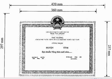 Mẫu bằng công nhận huyện đạt chuẩn nông thôn mới |