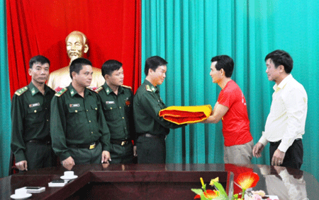 Nhân dịp này, đoàn chúng tôi đã trao tặng lá cờ Tổ quốc 54m2 cho Đồn Biên phòng Lũng Cú cùng với mong muốn gửi gắm tới cán bộ, chiến sỹ luôn chắc tay súng bảo vệ vững chắc biên cương của Tổ quốc.