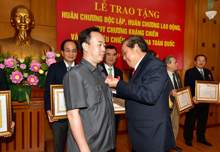 (Chinhphu.vn) - Chiều 5/7, Văn phòng Chính phủ (VPCP) đã tổ chức Lễ trao tặng Huân chương Độc lập, Huân chương Lao động, Huy chương kháng chiến và Danh hiệu Chiến sỹ thi đua toàn quốc cho một số đồng chí lãnh đạo VPCP, Trợ lý, Thư ký lãnh đạo Chính phủ, lãnh đạo cấp Vụ, Cục thuộc VPCP.