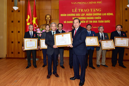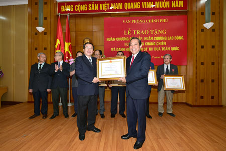 Huân chương Lao động hạng Ba được trao cho đồng chí Nguyễn Sỹ Hiệp, Phó Chủ nhiệm VPCP. Huy chương kháng chiến hạng Nhì được trao cho đồng chí Nguyễn Thành Công, Hàm Vụ trưởng Vụ III, VPCP.